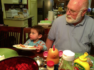 We were late because somebody was busy taking a nap and when I walked in you could see all the family like "who the fuck is that?" I announced myself loudly, "I'm Shirley's daughter. I brought the baby!" As it turned out Max and the birthday boy were the only small children there. We came in and I suffered through the same awkward conversation I probably had at Max's birthday party a year ago. "Are you still teaching?" "And what are you doing?" "How are the boys?" "What are your kids doing now?" We were all raised properly and so we all pretended to care about what we were saying to each other.